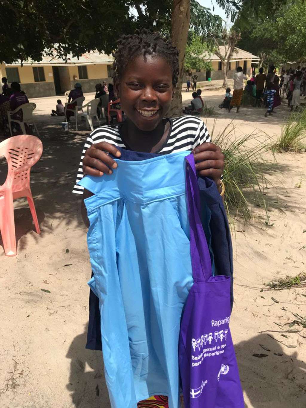 "Na minha comunidade tenho feito várias actividades e uma delas é a sensibilização diária via SMS para número de pais encarregados das minhas raparigas e eles passam a informação para as filhas, eu tive a oportunidade de participar de uma formação sobre a prevenção do COVID-19 e depois da formação participei do programa da manhã da rádio Moçambique e passei a informação aprendida no programa em directo, sinto-me motivada para continuar a expandir a informação e marquei com 03 das minhas raparigas para fazer máscaras de capulana para ajudar na prevenção do COVID-19." Sheila Jamal, 18 anos, Cidade de Nampula